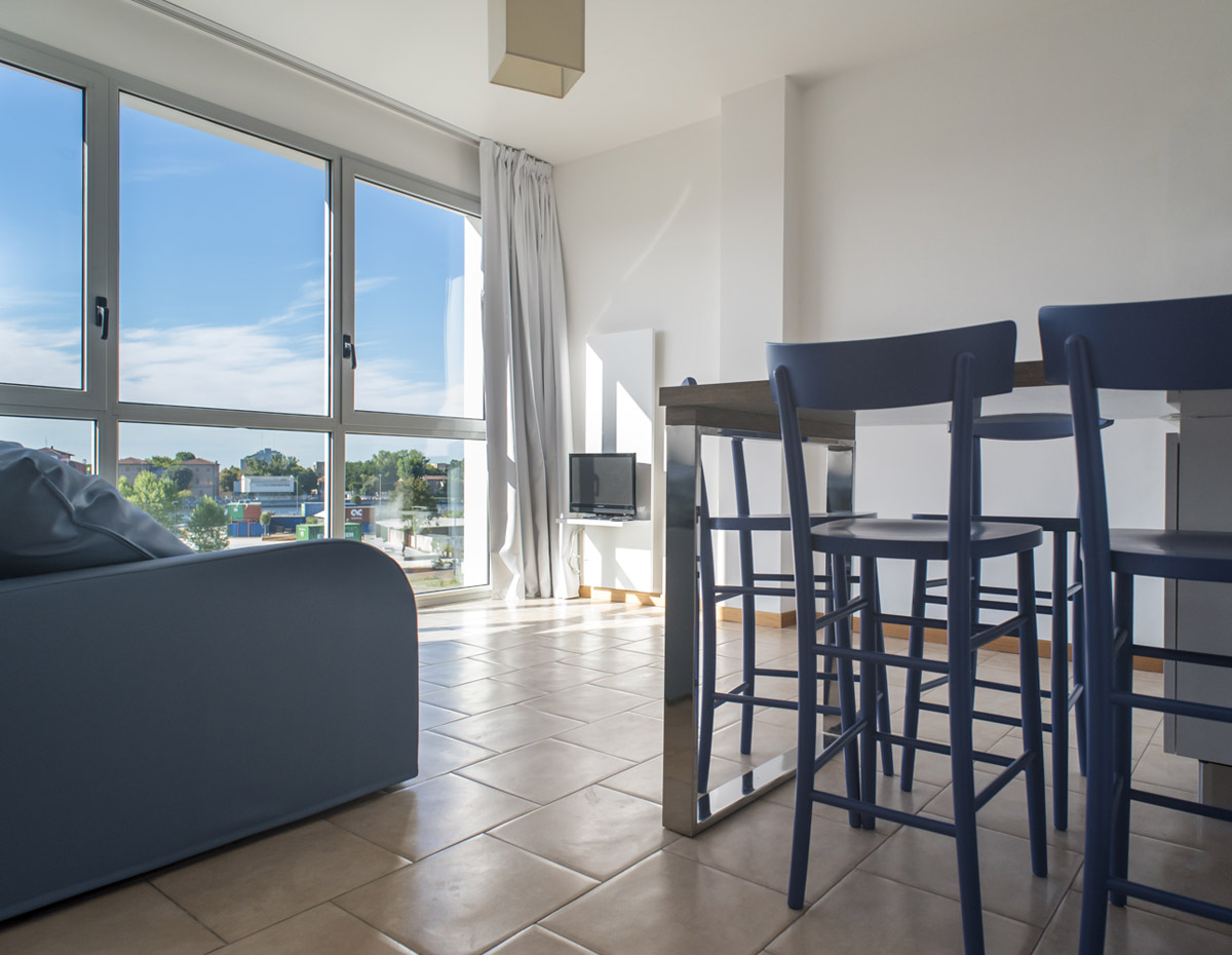 Per rendere il tuo soggiorno ancora più piacevole, mettiamo a disposizione una zona lavanderia in comune gratuita con lavatrice e asciugatrice, e un ampio parcheggio pubblico gratuito di fronte al residence. Nelle immediate vicinanze troverai bar, ristoranti, locali, fermate dell’autobus, farmacia, supermercato, tabacchi, deposito bagagli 24 ore su 24, banche e la suggestiva passeggiata lungo il canale della Darsena di Ravenna. Grazie al sottopassaggio ferroviario, potrai raggiungere i binari in pochi minuti, evitando lunghe deviazioni. La posizione strategica del Residence ti permetterà di raggiungere facilmente le splendide spiagge di Ravenna e il parco divertimenti di Mirabilandia, oltre a essere ben collegato alle autostrade A14 ed E45.