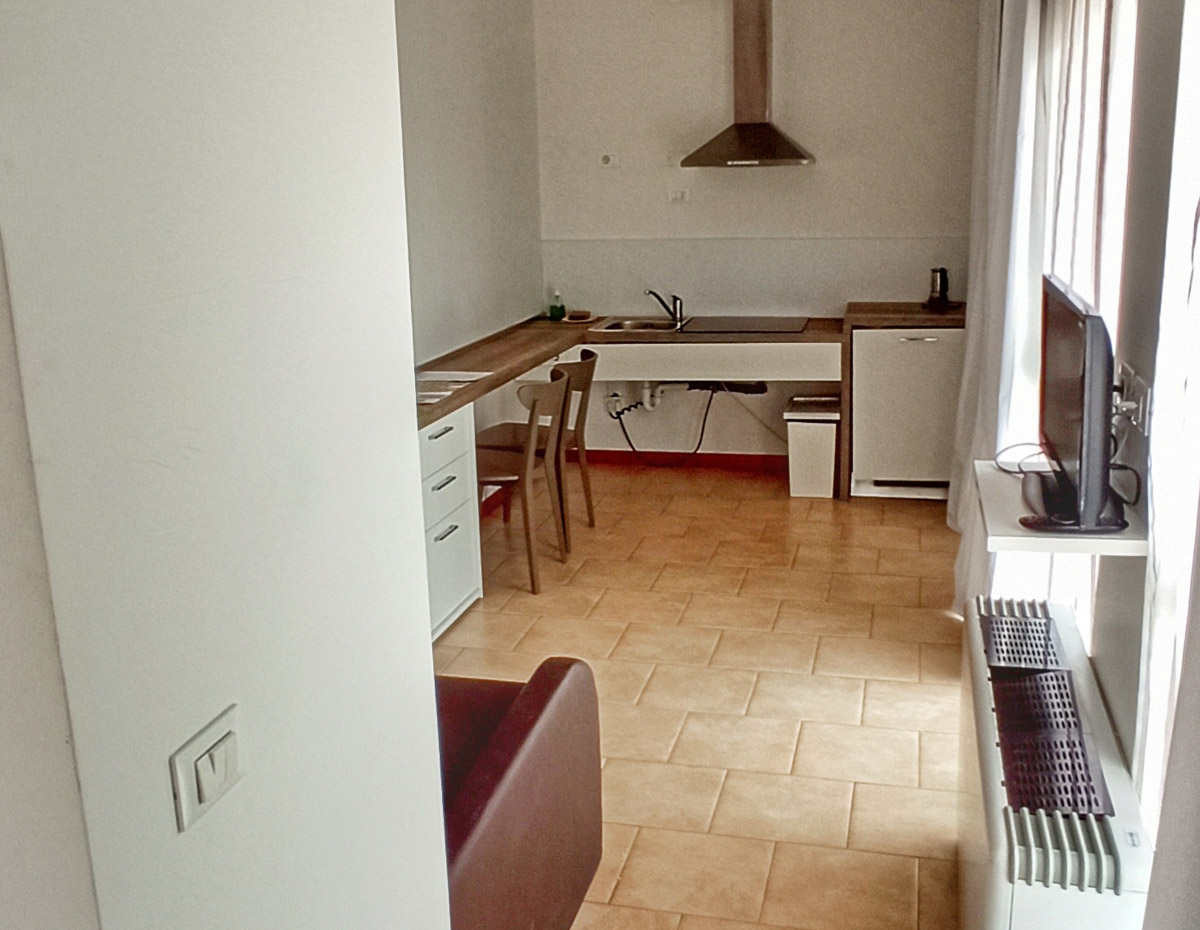 Appartamento 35mq, cucina accessoriata, frigorifero, piano cottura a induzione, tavolo + sedie, bagno privato, letto matrimoniale, Tv, armadio, riscaldamento o aria condizionata centralizzata pompa di calore, Internet Wifi,.